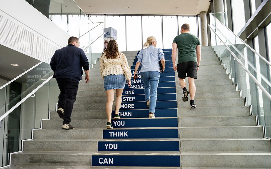 Studerende fra EVU går på trappen